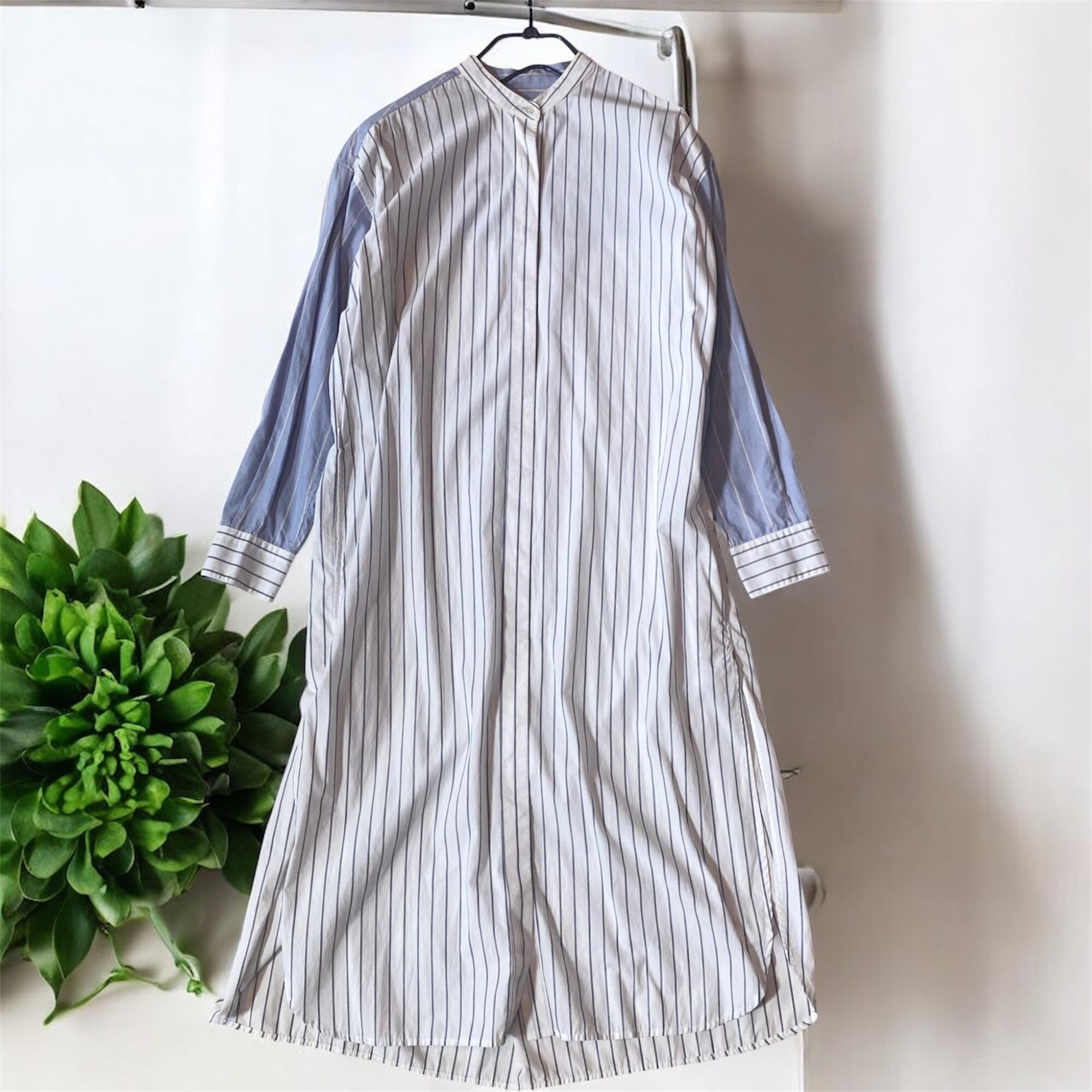 IENA イエナ コットンストライプシャツワンピース 青 ホワイト 古着 レディース サイズ36