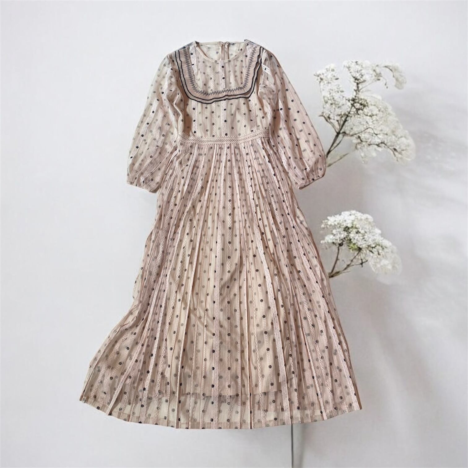 セミシースルー ドット柄 ロングワンピース