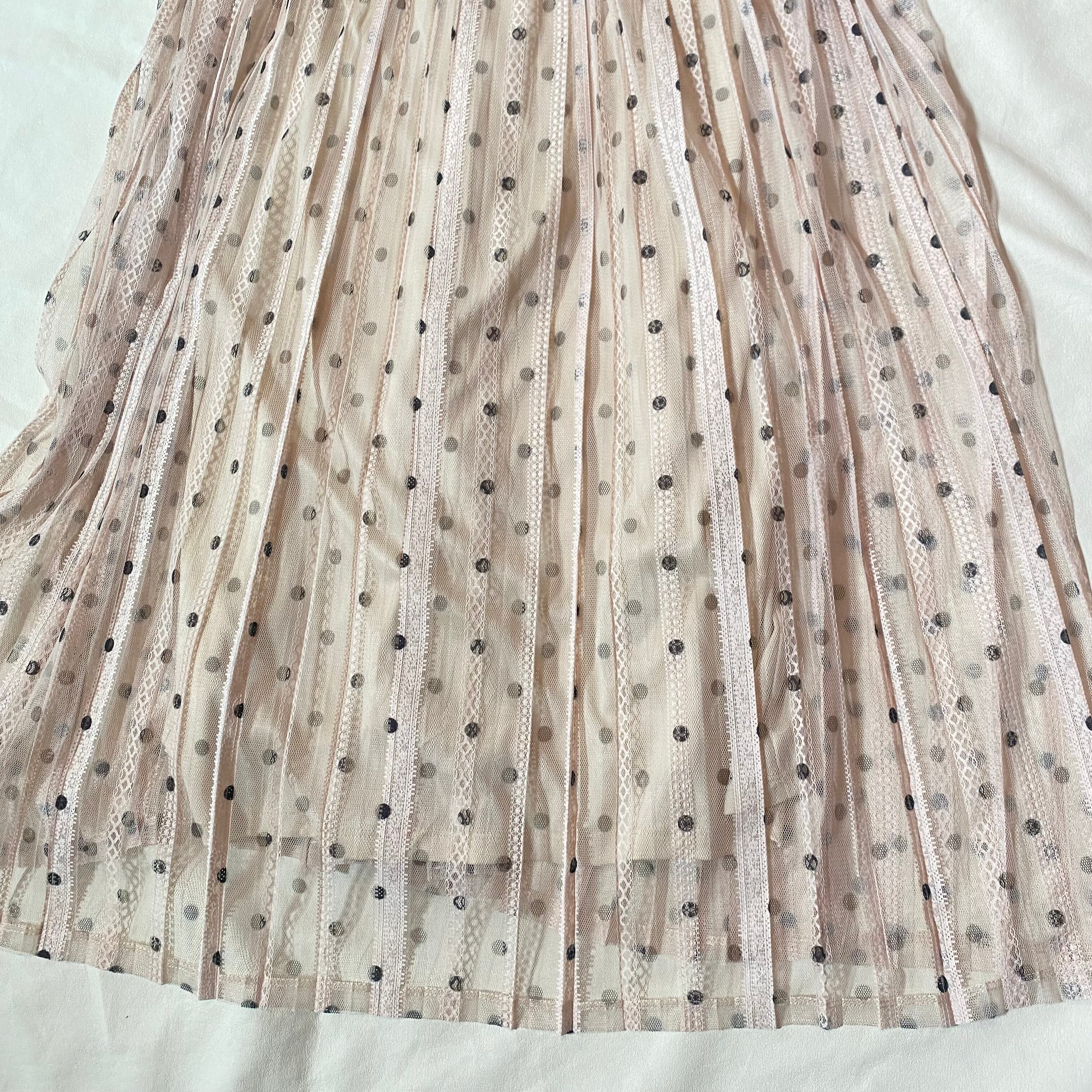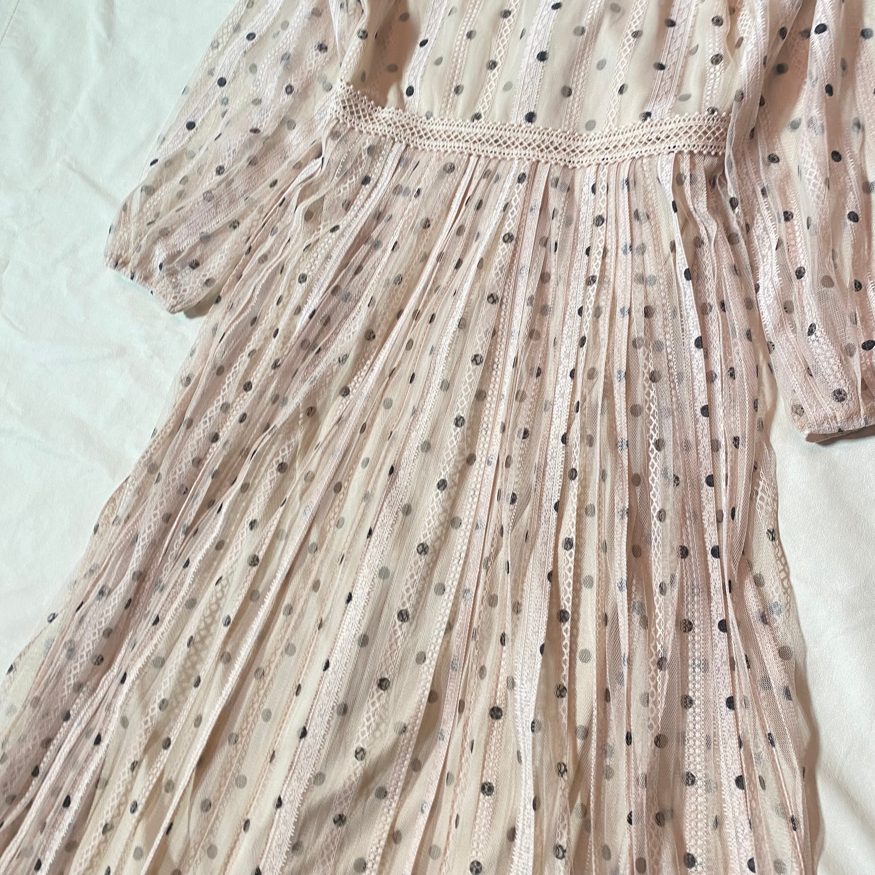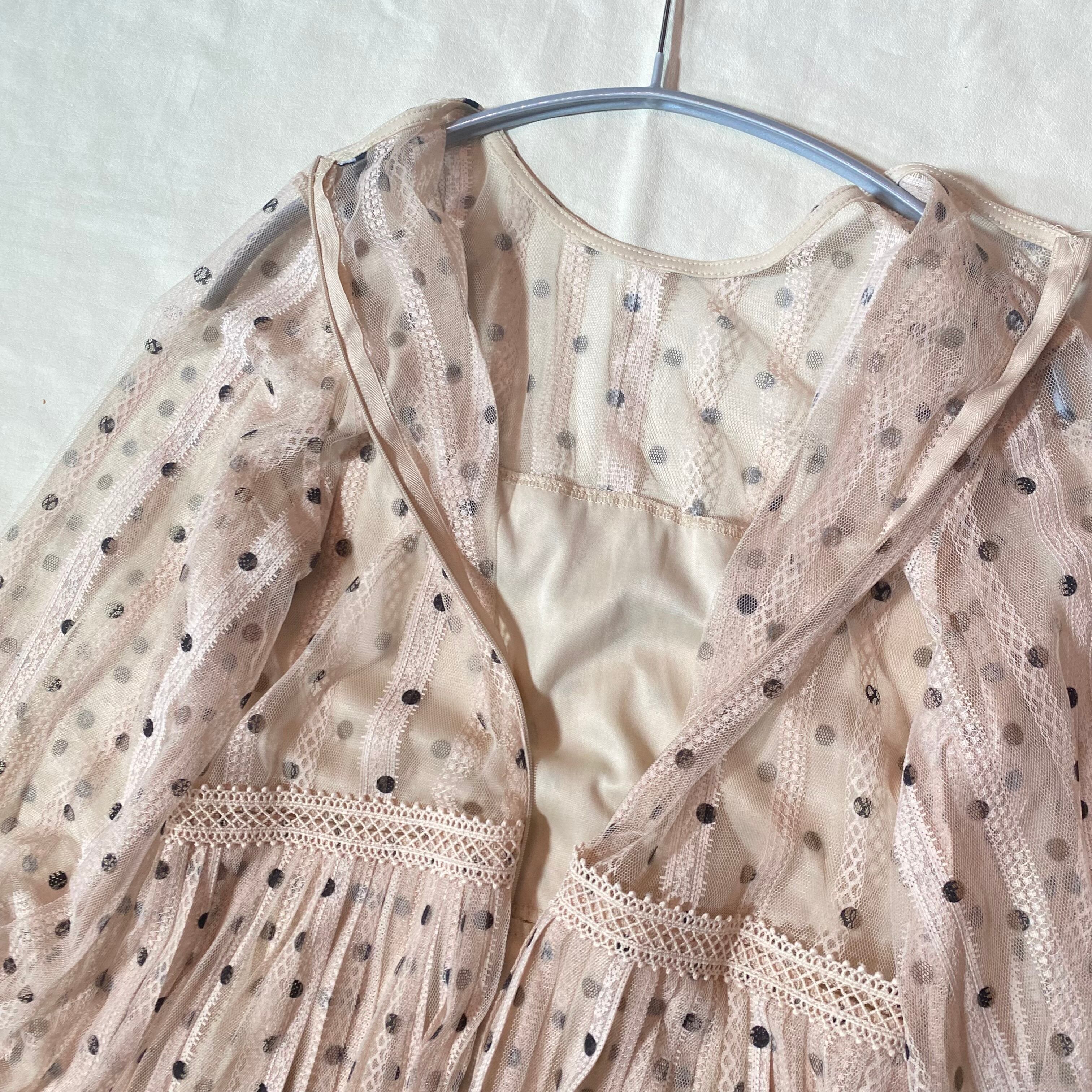 ZARA ザラ セミシースルードット柄 ロングワンピース ベージュ系 古着 レディース サイズS
