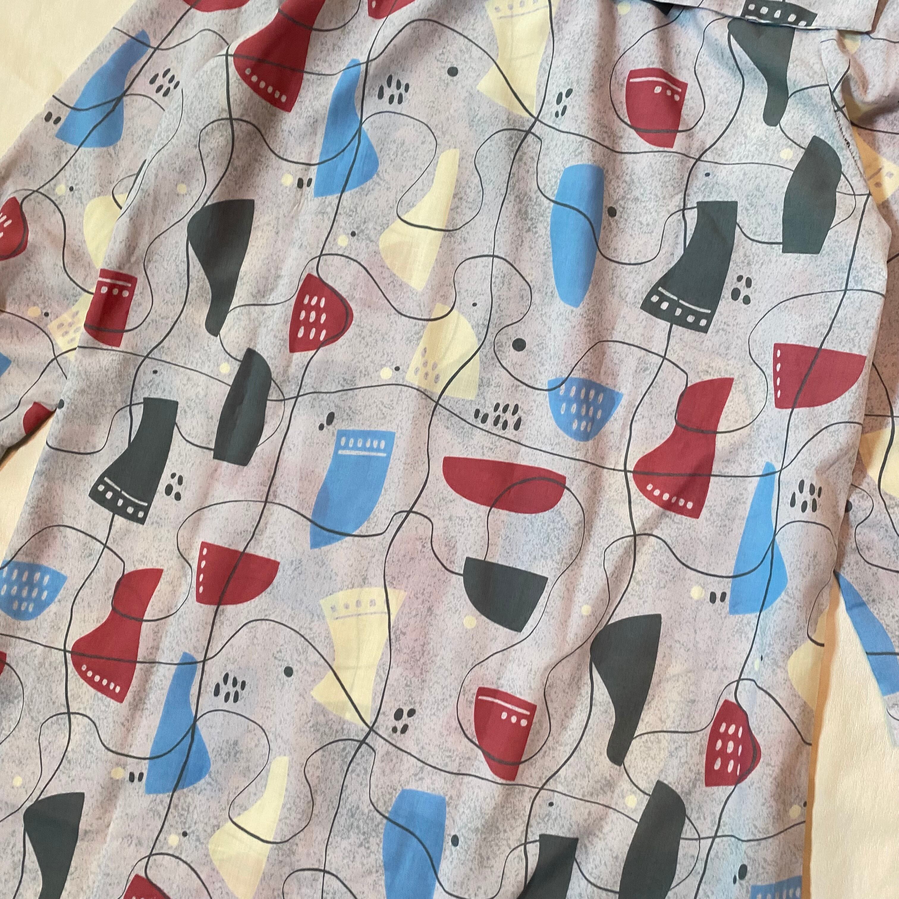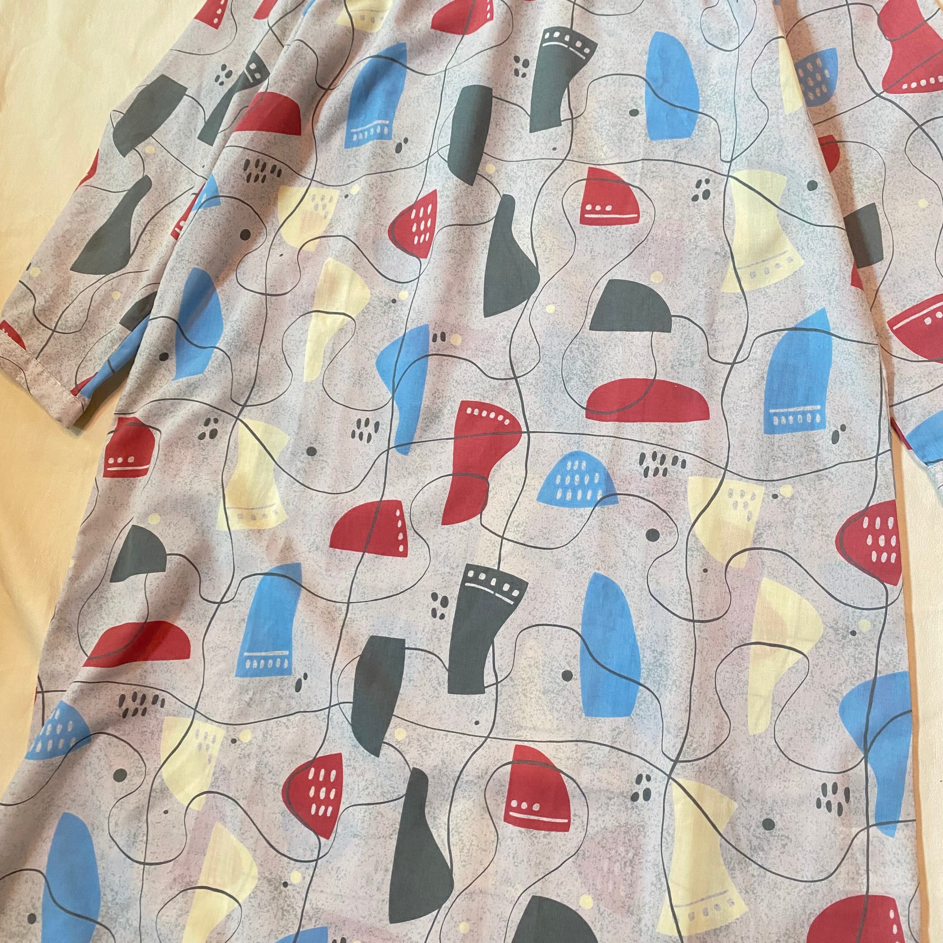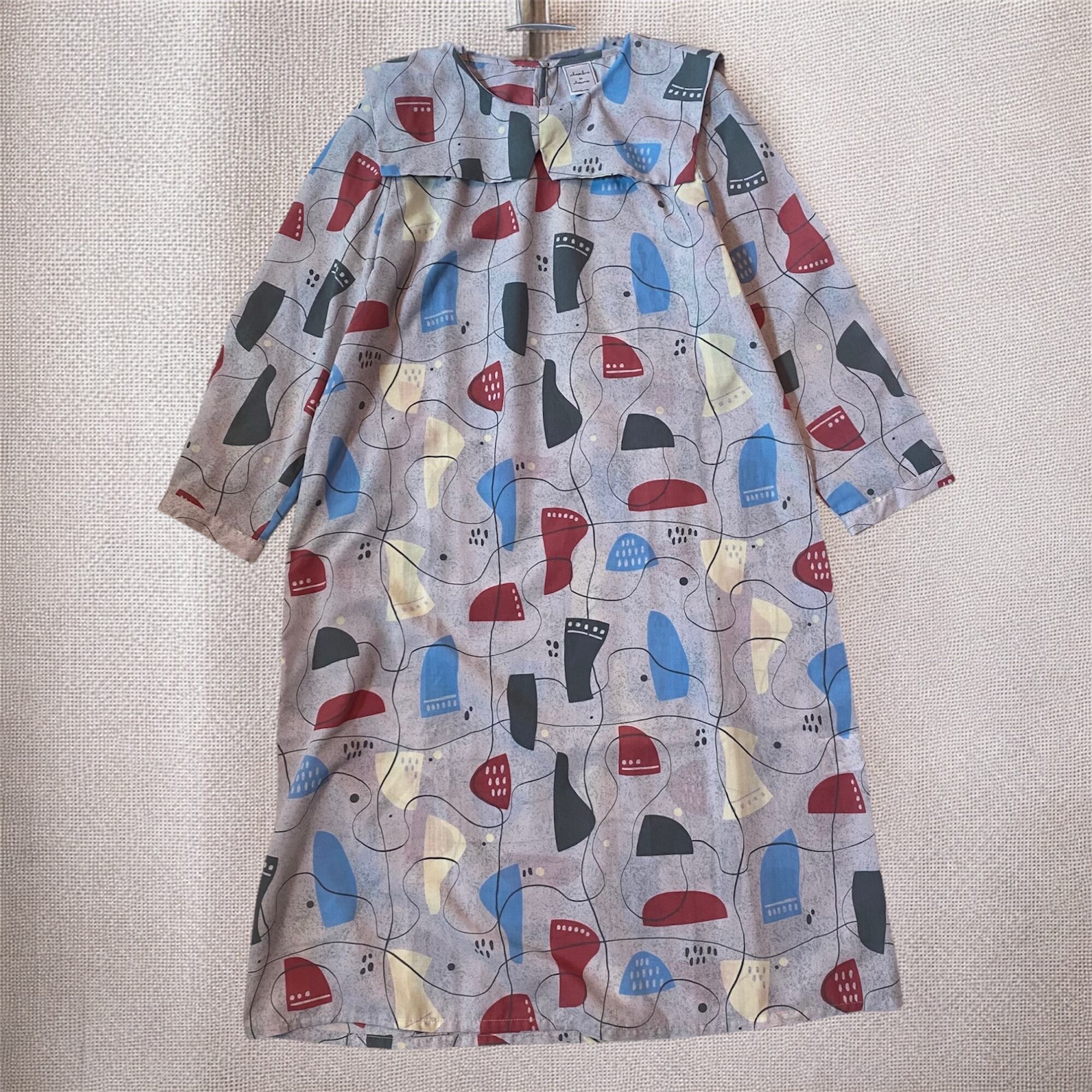 シャンブルドゥシャーム 50スパンローン陶器のカケラプリント ワンピース レディース 古着 サイズフリー