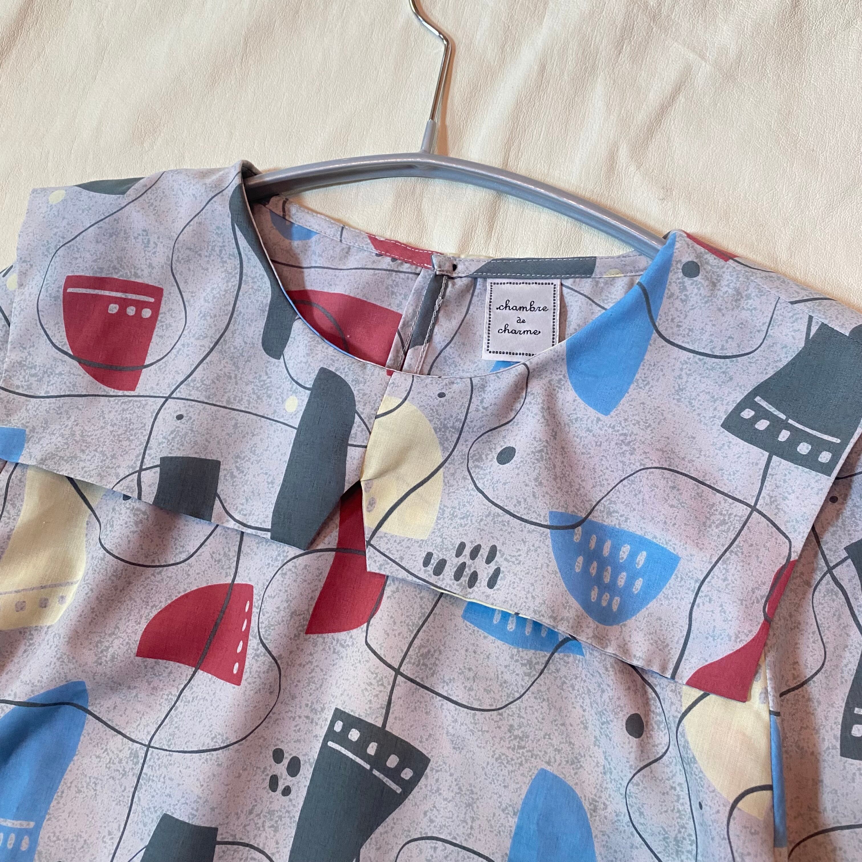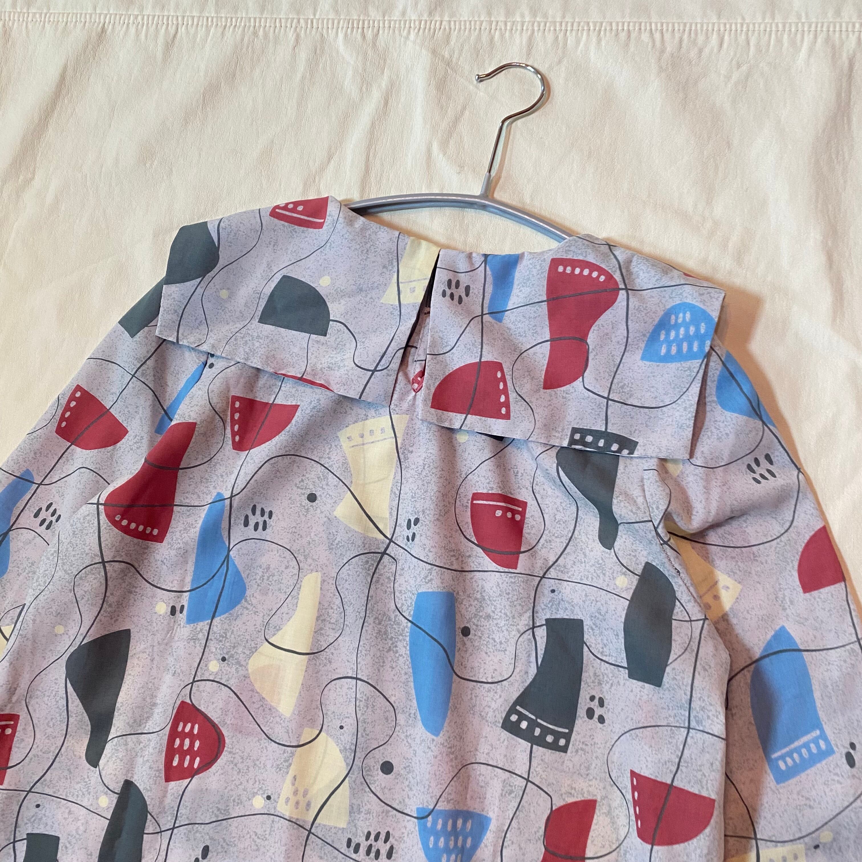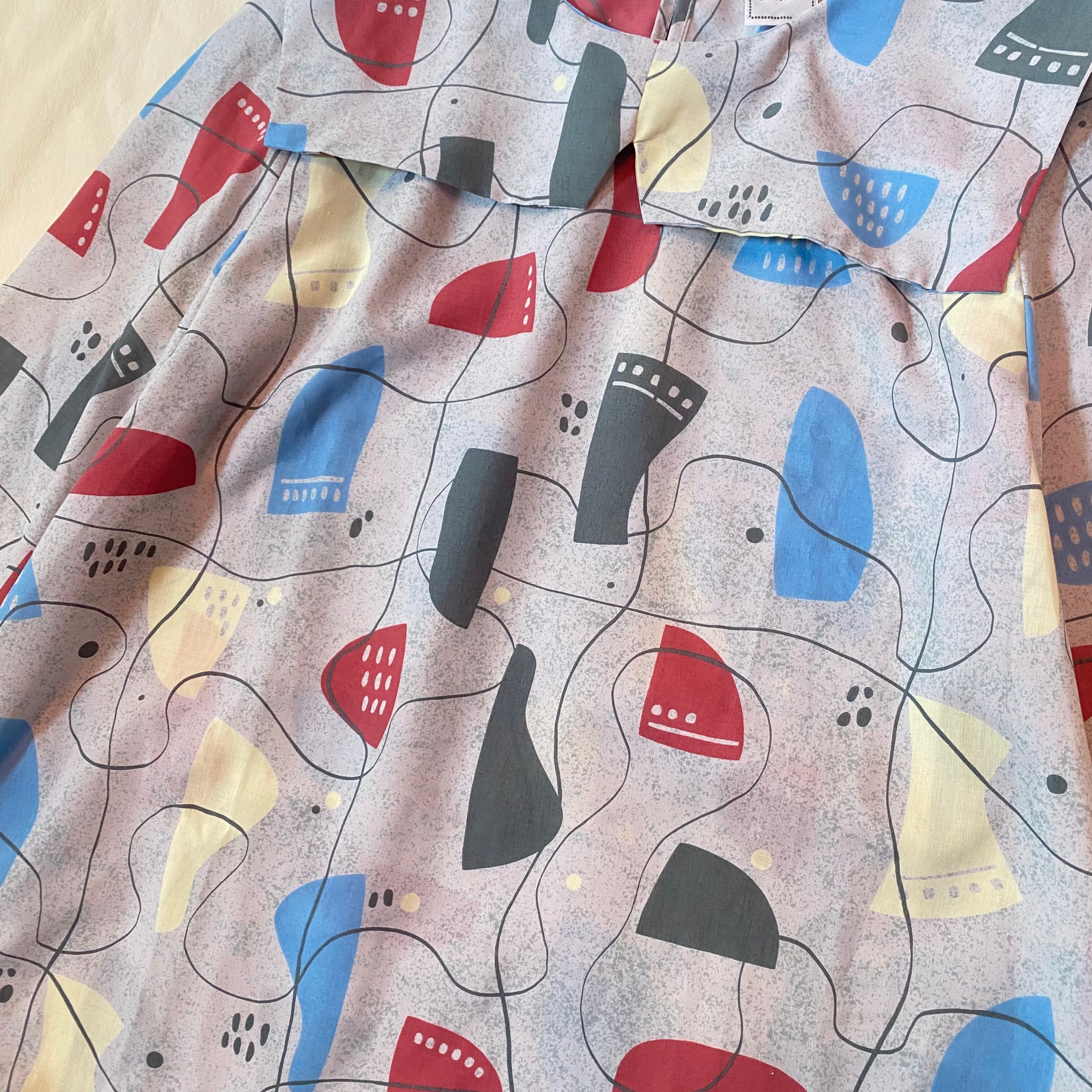 シャンブルドゥシャーム 50スパンローン陶器のカケラプリント ワンピース レディース 古着 サイズフリー
