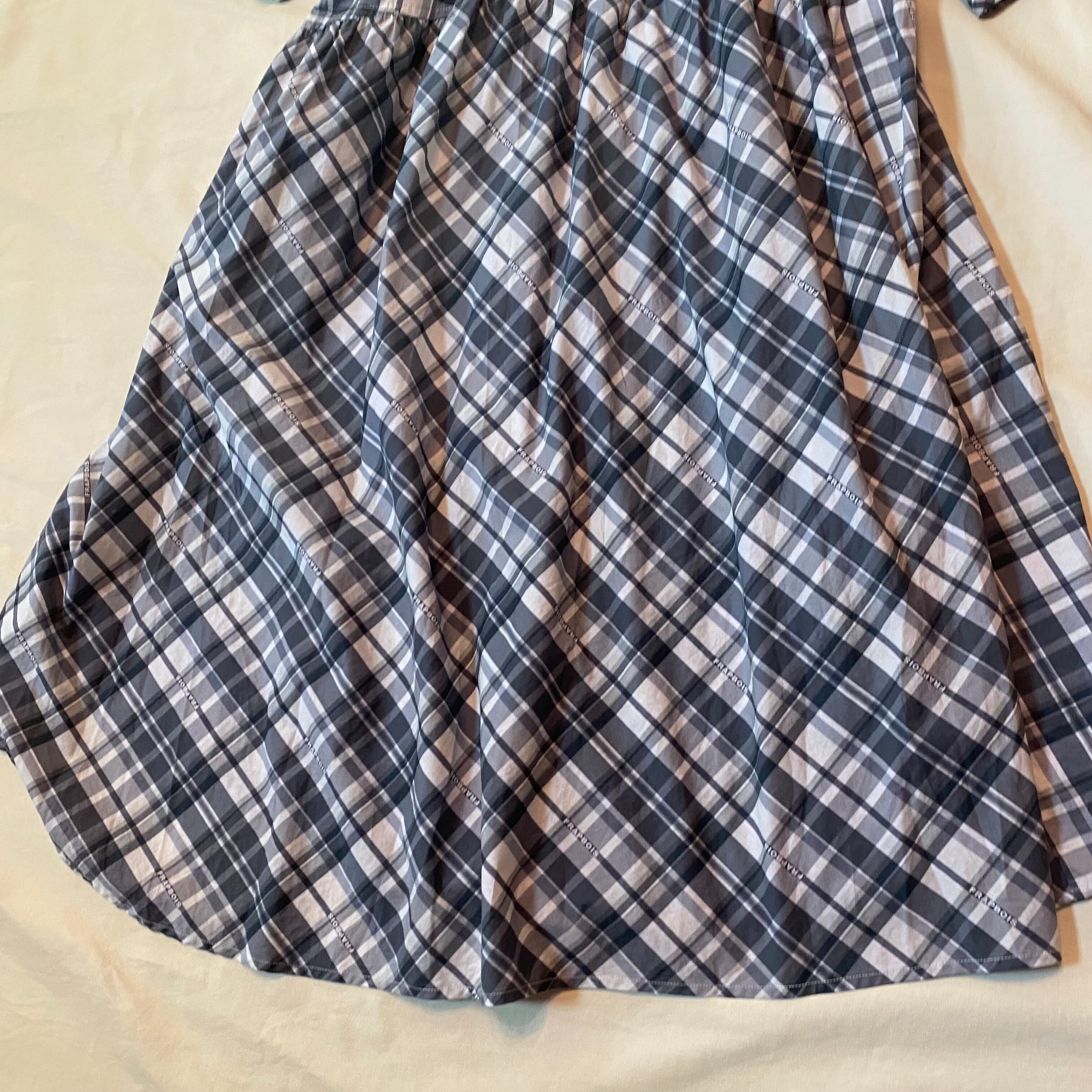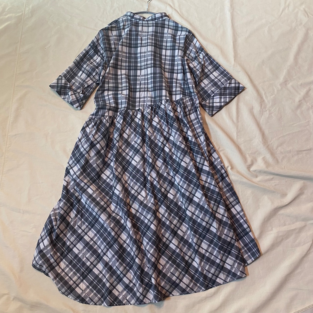 オリジナルのマドラスチェック生地を使用した、ゆったりとした身幅とギャザー分量がたっぷりと入ったワンピース。