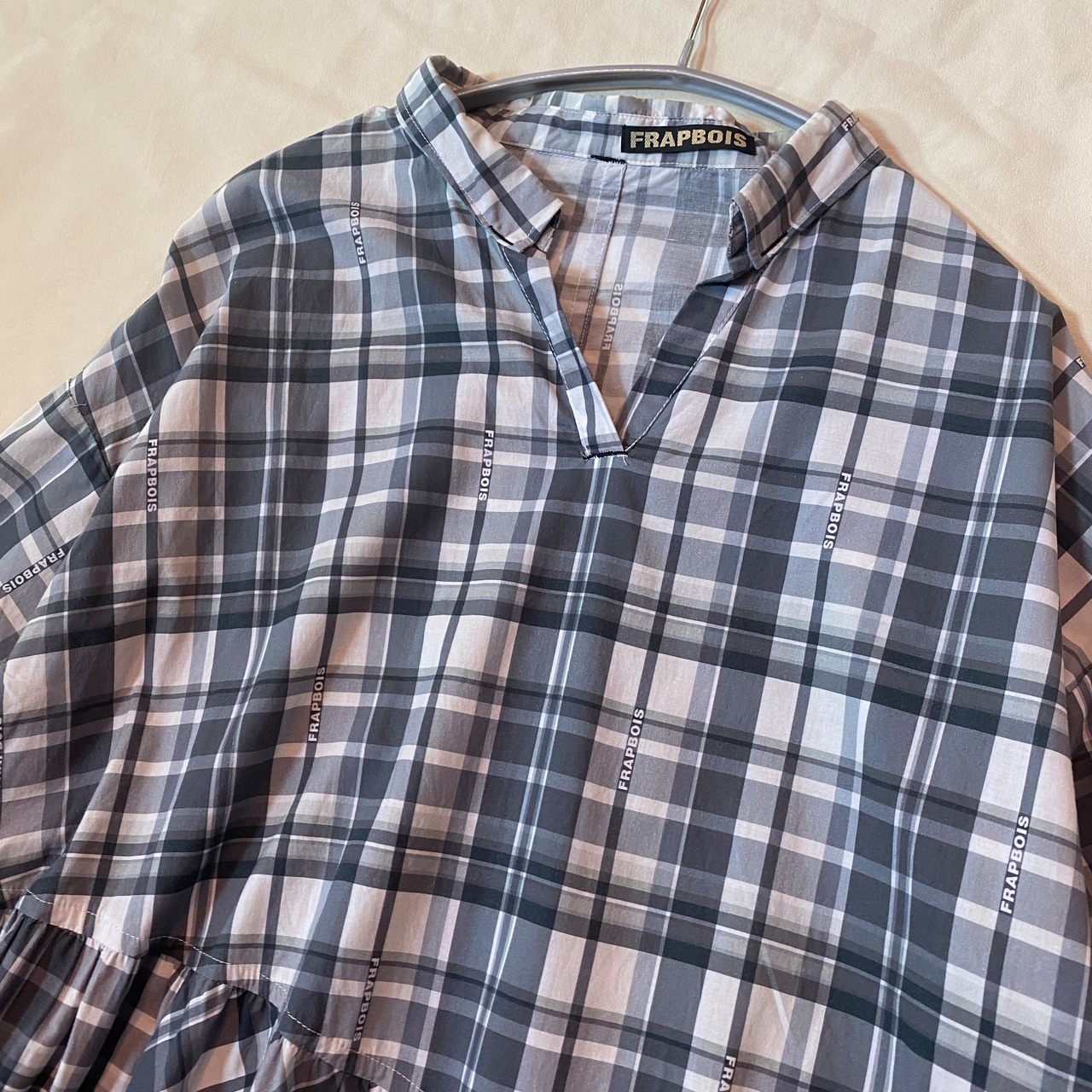 FRAPBOIS マドラスローン ワンピース チェック柄 グレー系 古着 レディース サイズ1